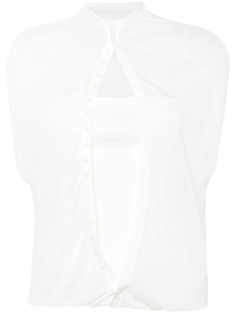Le Haut Capa knitted top Highlights - White - Knitted construction - Layered design - Semi-sheer construction - Round neck - Cap sleeves - Internal tank top with spaghetti straps - Straight hem - Front button fastening Imported Composition Viscose 62%, Polyamide 34%, Elastane 4% SIZE & FIT Model measurements Height 5 ft 9 in(1.76 m) Bust/Chest 31.88 in(81 cm) Hips 35.43 in(90 cm) Waist 24.8 in(63 cm) FittingInformation Designed for a relaxed fit, this piece allows for comfort and movement when worn Made with a midweight knit, this piece offers some stretch This piece fits true to size – take your usual size