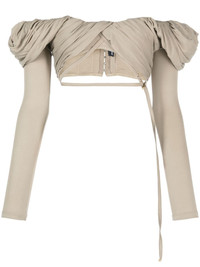 Le haut Spalla off-shoulder blouse Presented in the Palace of Versailles, Jacquemus' Le Chouchou collection presents the brand's contemporary vision of a regal aesthetic. With a signature distinctive aesthetic, the brand showcases this cropped top, defined by its romantic off-shoulder puff sleeves and twisted bodice. Highlights - Khaki - Stretch-design - Ruched bodice - Twist detailing - Off-shoulder - Long puff sleeves - Rear hook and eye fastening - Adjustable waist strap - Cropped Imported Composition Cupro 93%, Elastane 7% SIZE & FIT Model measurements Height 5 ft 11 in(1.8 m) Bust/Chest 31.49 in(80 cm) Hips 35.82 in(91 cm) Waist 24.8 in(63 cm) Washing instructions Dry Clean Only