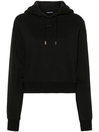 Le Hoodie Gros Grain cotton hoodie Jacquemus demonstrates its affinity for minimalism with this black cotton hoodie. It’s simply adorned with a logo-embroidered grosgrain applique at the chest. Highlights - Black - Cotton - Jersey texture - Grosgrain loop tab - Embroidered logo to the front - Drawstring hood - Long sleeves - Ribbed cuffs and hem - Cropped Imported Composition Cotton 100% SIZE & FIT Model measurements Height 5 ft 10 in(1.79 m) Bust/Chest 31.49 in(80 cm) Hips 35.03 in(89 cm) Waist 23.62 in(60 cm) Measurement SLEEVE LENGTH 23.22 in(59 cm) LENGTH 20.07 in(51 cm) BUST 40.15 in(102 cm) Shoulder Width 21.65 in(55 cm) Washing instructions Machine Wash