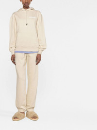 Le Jogging Jacquemus track pants Jacquemus subtly elevates these organic cotton 'Le Jogging' track pants with a logo print at the leg, giving the casual pair a signature touch. Highlights - Le jogging track pants from jacquemus featuring light beige, organic cotton, logo print at the leg, elasticated waistband, two side slit pockets, rear zip-fastening pocket and elasticated ankles. when buying this unisex item, keep in mind that it is graded in standard men's sizing.. . Imported Composition Organic Cotton 100% SIZE & FIT Model measurements Height 5 ft 10 in(1.77 m) Bust/Chest 31.49 in(80 cm) Hips 33.85 in(86 cm) Waist 22.44 in(57 cm) Measurement INSIDE LEG 32.99 in(83.8 cm) Hem Width 12.99 in(33 cm) FRONT RISE 12.99 in(33 cm) WAIST 32 in(81.3 cm) BACK RISE 14.48 in(36.8 cm) HIPS 44.01 in(111.8 cm) FittingInformation This piece fits true to size. We recommend you get your regular size Designed to be loose over the leg with a fitted waist and hem Made with a mid-weight fabric Washing instructions Machine Wash