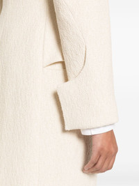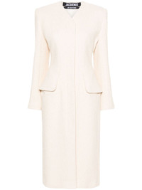 Le Manteau Cubo maxi coat Jacquemus’ Le Manteau Cubo coat hails from the Les Sculptures collection inspired by French style icons like Catherine Deneuve and the works of Swiss artist Giacometti. It’s tailored from off-white boucle with strong shoulders to enhance the look of the nipped waist and extended tabs that curve around the cuffs. Highlights - Off-white - Cotton blend - Stretch-design - Boucle construction - Concealed front button fastening - Collarless - Shoulder pads - Long sleeves - Buttoned cuffs - Dart detailing - Two front flap pockets - Central rear vent - Mid-calf length - Internal jetted pocket - Full lining Imported Composition Outer: Cotton 90%, Polyamide 9%, Spandex/Elastane 1% Lining: Viscose 100%, Cotton 97%, Spandex/Elastane 3% SIZE & FIT Model measurements Height 5 ft 11 in(1.8 m) Bust/Chest 30.7 in(78 cm) Hips 35.03 in(89 cm) Waist 24.4 in(62 cm) FittingInformation Designed for a slim fit that sits just away from the body offering a close yet comfortable fit The internal shoulder pads offer a structured shape Made from a midweight non-stretch fabric This piece fits true to size – take your usual size Washing instructions Dry Clean Only