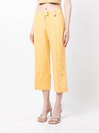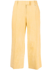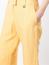 Le Pantalon Areia linen trousers Highlights - Canary yellow - Linen blend - Pressed crease - Concealed fly and button fastening - Two side slit pockets - Two rear patch pockets - Cropped Imported Composition Body: Linen/Flax 60%, Viscose 26%, Polyester 14% Lining: Cotton 97%, Elastane 3% SIZE & FIT Model measurements Height 5 ft 10 in(1.77 m) Bust/Chest 31.88 in(81 cm) Hips 33.85 in(86 cm) Waist 24.01 in(61 cm) FittingInformation Designed for a straight-leg fit, these trousers allow for a close fit at the waist and an unrestricted, comfortable fit over the leg Cropped in length Made from a midweight non-stretch fabric This piece fits true to size – take your usual size Washing instructions Machine Wash