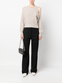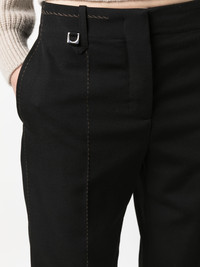Le pantalon Cordao trousers The 'The Pantalon Cordao' trousers by Jacquemus feature playful contrast stitching detail. Designed with a low waist and flared silhouette, the trousers offer a classic look with a youthful twist. Highlights - Black - Virgin wool - Low-waist - Hook and zip fly fastening - Decorative stitching - 'j' loop - D-ring - Pressed pleats - Rear welt pocket - Flared Imported Composition Outer: Virgin Wool 100% Lining: Cotton 97% Spandex/Elastane 3% SIZE & FIT Model measurements Height 5 ft 11 in(1.8 m) Bust/Chest 31.49 in(80 cm) Hips 36.41 in(92.5 cm) Waist 25.59 in(65 cm) Washing instructions Dry Clean Only