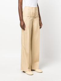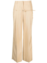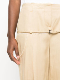 Le Pantalon Criollo wide-leg trousers Jacquemus merges a tailored-inspired silhouette with characteristic unexpected details in the design of these wide-leg trousers. They’re underpinned with a contrasting frayed waistband and off-kilter belt detailing that evokes a deconstructed look. Highlights - Light beige - Stretch-cotton - Layered effect - Pressed crease - High waist - Belt loops - Belted waist - Concealed front fastening - Two side inset pockets - Wide leg Imported Composition Lining: Cotton 97%, Elastane 3% Outer: Viscose 100% SIZE & FIT Model measurements Height 5 ft 10 in(1.77 m) Bust/Chest 29.92 in(76 cm) Hips 34.25 in(87 cm) Waist 23.62 in(60 cm) Measurement INSIDE LEG 32.28 in(82 cm) HIPS 36.22 in(92 cm) WAIST 25.98 in(66 cm) FittingInformation Designed with a wide-leg cut, these trousers allow for a close fit at the waist and offer a loose and roomy fit over the leg Made from a midweight non-stretch fabric This piece fits true to size – take your usual size Washing instructions Dry Clean Only