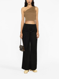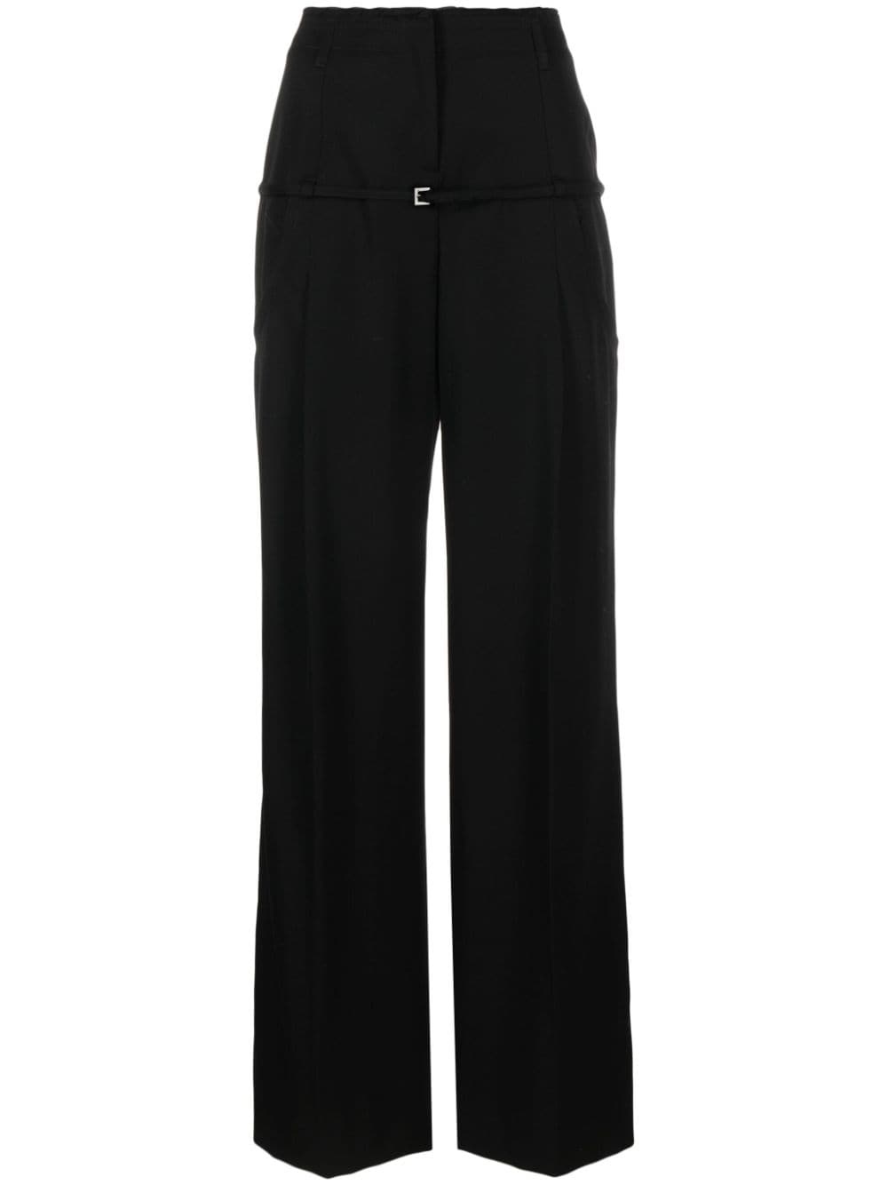 Le Pantalon Criollo wool trousers Slender buckled belts, like the detachable one on these wide-leg virgin-wool trousers, are a common detail found across Jacquemus’ Le Chouchou collection. In an unexpected twist, it wraps around the hips through a set of secondary belt loops. Layered, frayed trims add a considered deconstructed touch. Highlights - Black - Virgin wool - Low-rise - Belted waist - Belt loops - Pleat detailing - Piped-trim detailing - Concealed front zip fastening - Two rounded pockets to the sides - Raw edge - Wide leg Imported Composition Outer: Virgin Wool 100% Lining: Cotton 97%, Spandex/Elastane 3% SIZE & FIT Model measurements Height 5 ft 10 in(1.78 m) Bust/Chest 31.49 in(80 cm) Hips 35.03 in(89 cm) Waist 23.62 in(60 cm) Measurement FRONT RISE 11.02 in(28 cm) INSIDE LEG 32.67 in(83 cm) HIPS 37.79 in(96 cm) WAIST 27.55 in(70 cm) FittingInformation Designed with a wide-leg cut, these trousers allow for a close fit at the waist and offer a loose and roomy fit over the leg Made from a midweight non-stretch fabric This piece fits true to size – take your usual size