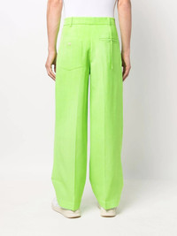 Le Pantalon Mela wide-leg trousers green silk-blend pressed crease pleat detailing low-rise front button and zip fastening two side slash pockets two rear welt pockets full lining wide leg Imported Composition Lining: Cotton 55%, Polyester 45% Outer: Viscose 57%, Silk 43% SIZE & FIT Model measurements Height 6 ft 2 in(1.89 m) Bust/Chest 37.79 in(96 cm) Hips 37 in(94 cm) Waist 29.92 in(76 cm) FittingInformation This piece fits true to size. We recommend you get your regular size Designed for a slim fit at the waist and loose over the leg Made with a mid-weight non-stretch fabric Washing instructions Dry Clean Only
