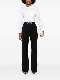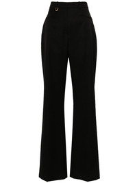 Le Pantalon Sauge flared trousers Highlights - Black - Virgin wool - Tailored design - High waist - Belt loops - Two rounded pockets to the sides - Pressed crease - Full-length - Flared hem - Concealed front button, hook and zip fastening Imported Composition Lining: Cotton 97%, Elastane 3% Outer: Virgin Wool 100% SIZE & FIT Model measurements Height 5 ft 11 in(1.8 m) Bust/Chest 32.67 in(83 cm) Hips 35.82 in(91 cm) Waist 25.98 in(66 cm) FittingInformation Designed with a flared hem, these trousers allow for a close fit at the waist with a slim fit over the leg and widening towards the hem Made from a midweight non-stretch fabric This piece fits true to size – take your usual size