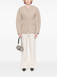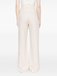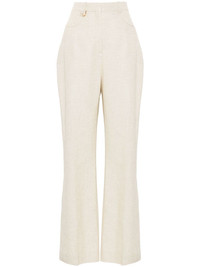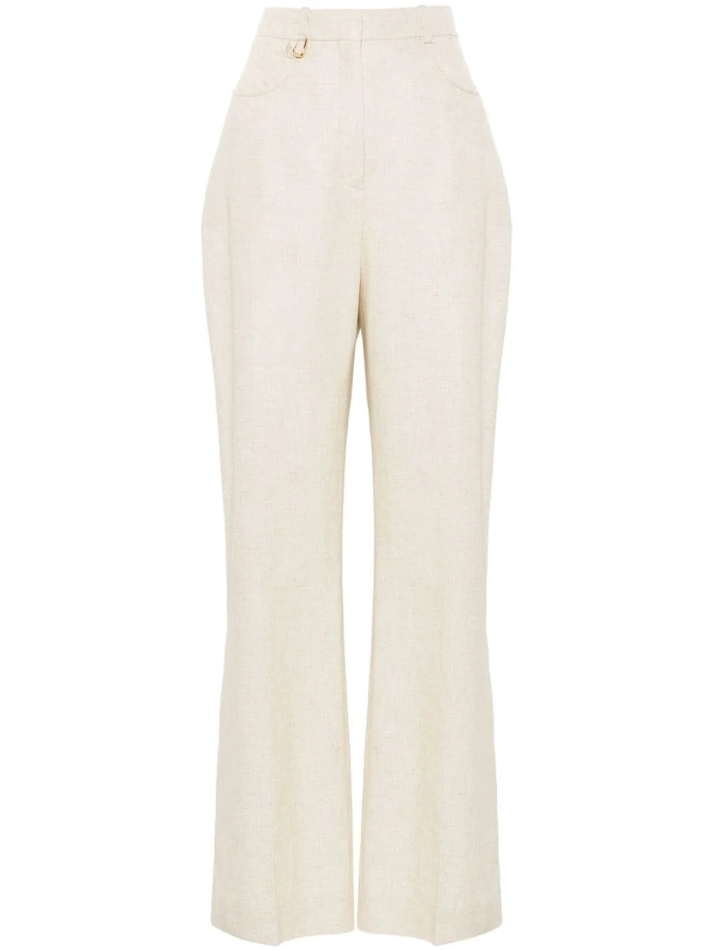 Le Pantalon Sauge trousers Highlights - Light beige - Slub texture - Belt loops - High-waisted - Ring hardware detailing - Two rounded pockets to the sides - Pressed crease - Flared hem - Concealed front button, hook and zip fastening Imported Composition Outer: Viscose 70%, Linen/Flax 30% Lining: Cotton 97%, Elastane 3% SIZE & FIT Model measurements Height 5 ft 9 in(1.75 m) Bust/Chest 34.64 in(88 cm) Hips 36.61 in(93 cm) Waist 26.37 in(67 cm) FittingInformation Designed with a flared hem, these trousers allow for a close fit at the waist with a slim fit over the leg and widening towards the hem Made from a midweight non-stretch fabric This piece fits true to size – take your usual size