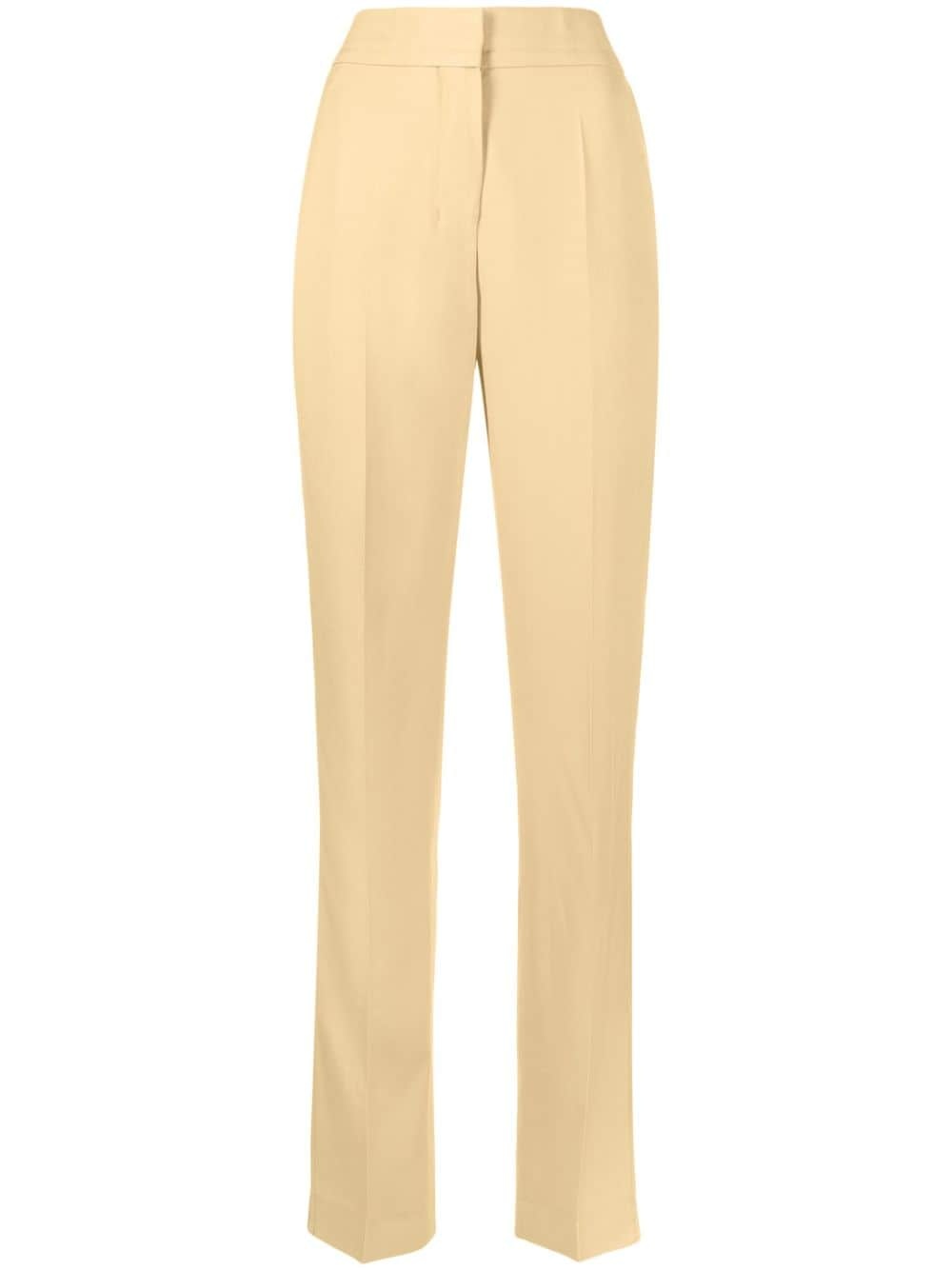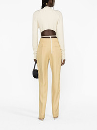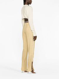 Le Pantalon Tibau trousers Cut from a cotton blend to a straight-leg silhouette, Jacquemus' trousers are characterised by their split cuffs. Highlights - Beige - Cotton blend - Split cuffs - Concealed front fastening - Pressed crease - Two rear welt pockets Imported Composition Lining: Cotton 97%, Spandex/Elastane 3% Outer: Viscose 100% SIZE & FIT Model measurements Height 5 ft 10 in(1.79 m) Bust/Chest 31.1 in(79 cm) Hips 35.03 in(89 cm) Waist 24.01 in(61 cm) FittingInformation Designed for a slim fit, these trousers offer a close fit at the waist, allowing a comfortable close fit and some movement over the leg Made from a midweight non-stretch fabric This piece fits true to size – take your usual size Washing instructions Dry Clean Only