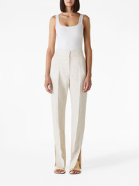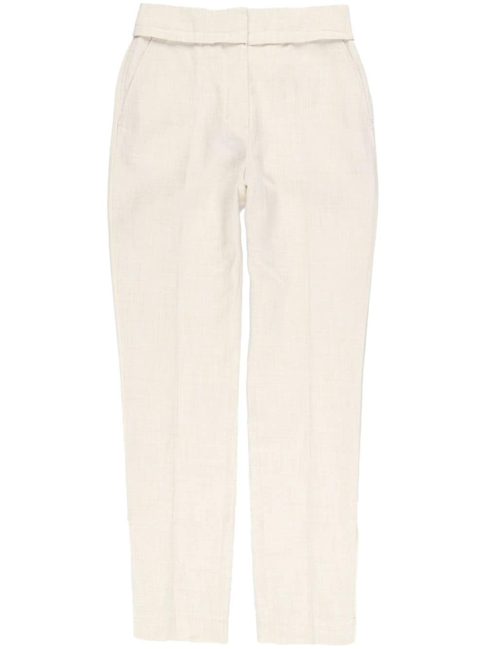 Le pantalon Tibau trousers These Jacquemus trousers embody the label's optimism and summer-ready aesthetic. They come in a breezy white hue and are designed to sit high on the waist and fall to subtly flared split hems. Highlights - Off-white - Linen blend - High-waisted - Pressed crease - Concealed front fastening - Two side slit pockets - Two rear welt pockets - Split cuffs Imported Composition Linen/Flax 60%, Viscose 26%, Polyester 14% SIZE & FIT Measurement WAIST 29.13 in(74 cm) HIPS 44.88 in(114 cm) FittingInformation Designed for a tapered fit, these trousers allow for a close fit at the waist and a loose unrestricted fit over the leg with a closer fit towards the ankle Made from a midweight non-stretch fabric This piece fits true to size – take your usual size