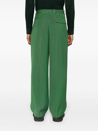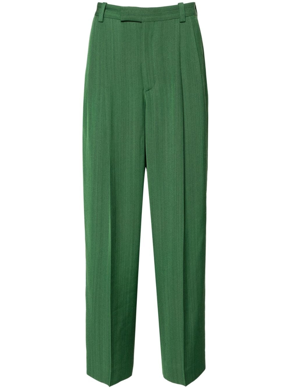 Le Pantalon Titolo wide-leg trousers Highlights - Green - Textured finish - Pleat detailing - Pressed crease - High waist - Belt loops - Concealed front fastening - Two side slit pockets - Rear flap pocket - Wide leg Imported Composition Outer: Viscose 70%, Silk 30% Lining: Cotton 97%, Spandex/Elastane 3% SIZE & FIT Model measurements Height 6 ft 2 in(1.87 m) Bust/Chest 37 in(94 cm) Hips 33.85 in(86 cm) Waist 27.95 in(71 cm) FittingInformation Designed with a wide leg, offering a loose and roomy fit Made from a midweight fabric This piece fits true to size – take your usual size Washing instructions Dry Clean Only