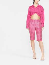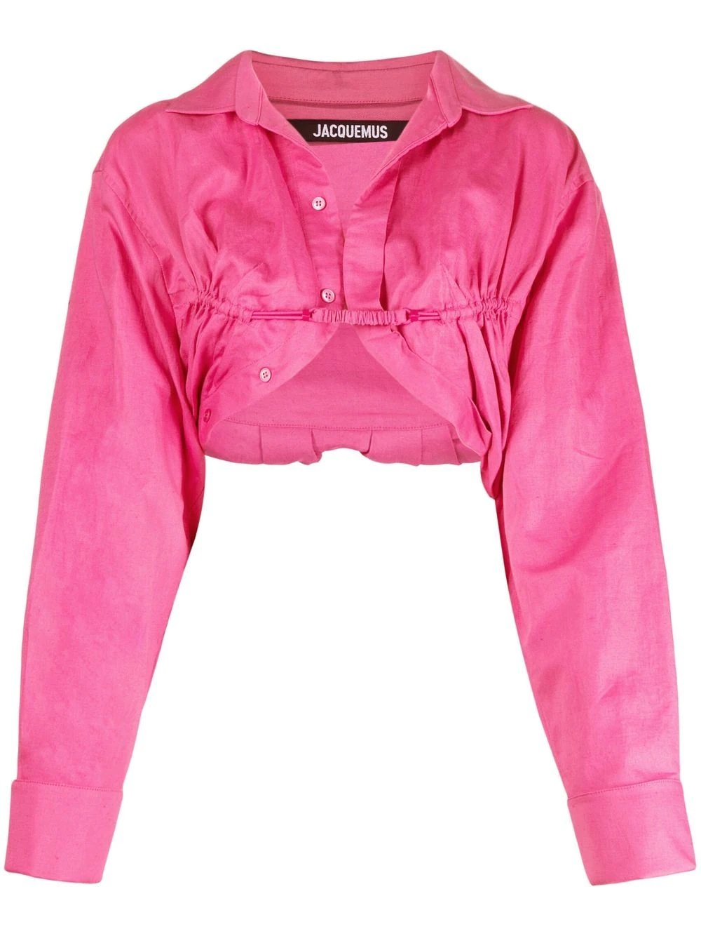 Le Papier bolero shirt Highlights - Bubblegum pink - Cotton-linen blend - Gathered detailing - Cropped - Elasticated strap - Mother-of-pearl button fastening - Spread collar - Long sleeves Imported Composition Cotton 55%, Linen/Flax 45% SIZE & FIT Model measurements Height 5 ft 11 in(1.8 m) Bust/Chest 31.49 in(80 cm) Hips 35.43 in(90 cm) Waist 25.19 in(64 cm) FittingInformation This piece fits true to size. We recommend you get your regular size Cut for a slim fit Made with a mid-weight non-stretch fabric Measurement BUST 32.99 in(83.8 cm) LENGTH 14.01 in(35.6 cm) WAIST 27.99 in(71.1 cm) SLEEVE LENGTH 24.01 in(61 cm)