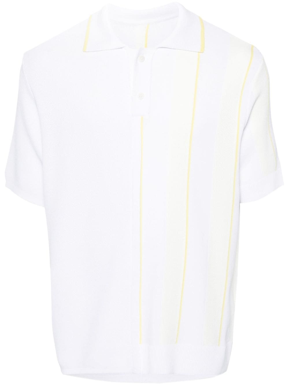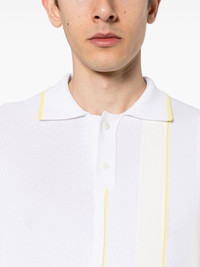 Le polo Juego polo shirt Highlights - White - Knitted construction - Contrast stripe detail - Polo collar - Short sleeves - Ribbed cuffs and hem - Straight hem - Short front button fastening Made in Italy Composition Viscose 71%, Polyamide 28%, Polyester 1% SIZE & FIT Model measurements Height 6 ft 2 in(1.87 m) Bust/Chest 36.41 in(92.5 cm) Hips 35.43 in(90 cm) Waist 29.52 in(75 cm) FittingInformation Designed for a loose fit, this polo shirt offers additional room throughout Made with a midweight knit, this piece offers some stretch This piece fits true to size – take your usual size Measurement CHEST 44.01 in(111.8 cm) SLEEVE LENGTH 10 in(25.4 cm) LENGTH 25.98 in(66 cm) WAIST 44.01 in(111.8 cm) Shoulder Width 17 in(43.2 cm)