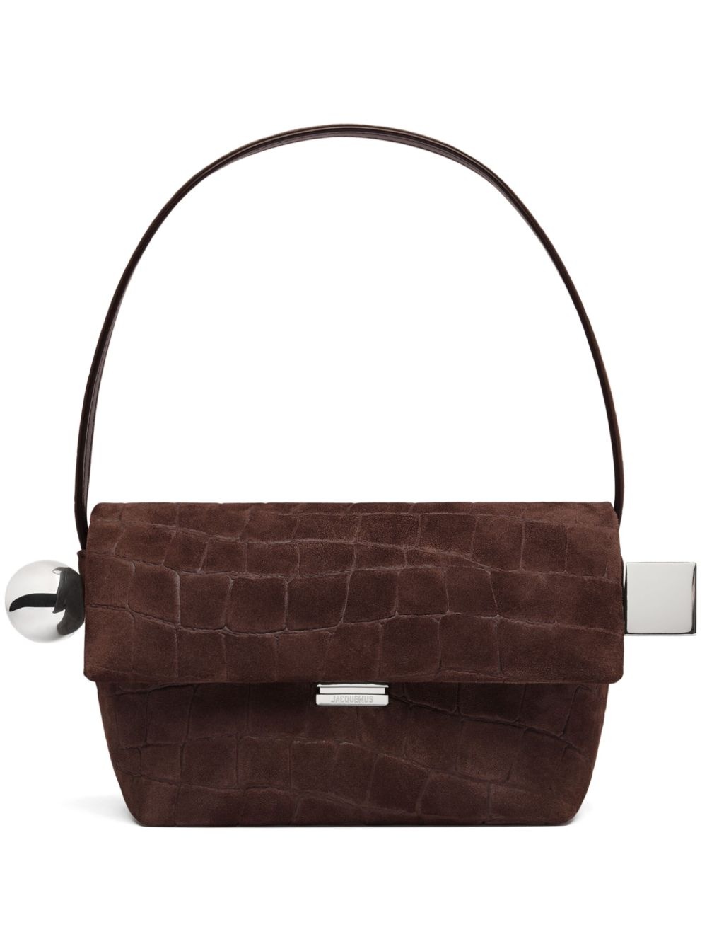 Le Rond Carre shoulder bag Highlights - Coffee brown - Foldover top with magnetic fastening - Single shoulder strap - Embossed crocodile effect - Silver-tone hardware Made in Italy Composition Outer: Calf Leather 100% Lining: Cotton 100% SIZE & FIT Measurement DEPTH 4.52 in(11.5 cm) HEIGHT 5.7 in(14.5 cm) WIDTH 10.82 in(27.5 cm)