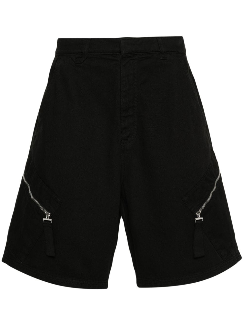 Le Short canvas cotton shorts Highlights - Black - Cotton - Canvas - Mid-rise - Belt loops - Two side slash pockets - Two side zip-fastening pockets - Branded zip puller - Above-knee length - Silver-tone hardware - Concealed front button, hook and zip fastening Made in Italy Composition Cotton 100% SIZE & FIT Model measurements Height 6 ft 0 in(1.84 m) Bust/Chest 35.82 in(91 cm) Hips 37 in(94 cm) Waist 28.34 in(72 cm) Measurement FRONT RISE 14.01 in(35.6 cm) INSIDE LEG 9.01 in(22.9 cm) BACK RISE 15.98 in(40.6 cm) HIPS 45.98 in(116.8 cm) WAIST 32 in(81.3 cm) FittingInformation Designed with a wide leg, offering a loose and roomy fit Made from a midweight non-stretch fabric This piece fits true to size – take your usual size