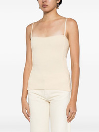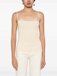 Le Haut Sierra ribbed tank top Highlights - Light beige - Stretch-design - Ribbed knit - Gold-tone logo lettering - Square neck - Adjustable spaghetti straps - Straight hem Imported Composition Viscose 80%, Polyester 12%, Elastane 8% SIZE & FIT Model measurements Height 5 ft 10 in(1.77 m) Bust/Chest 31.49 in(80 cm) Hips 35.43 in(90 cm) Waist 25.19 in(64 cm) FittingInformation Designed for a close fit throughout The adjustable shoulder straps allow for a preferred fit when worn Made with a midweight knit, this piece offers some stretch This piece fits close in all sizes – take your usual size Washing instructions Hand Wash