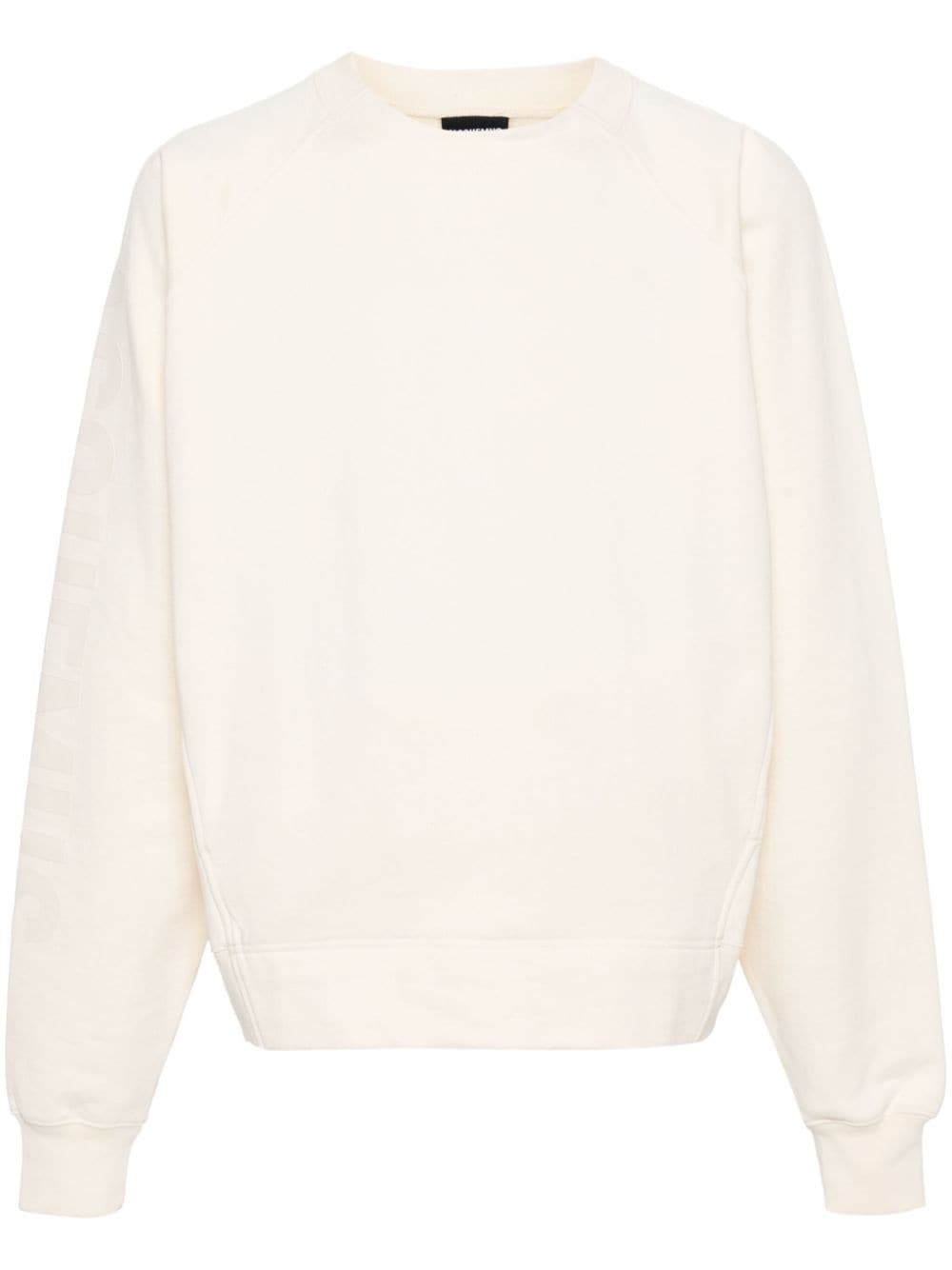 Le Sweatshirt Typo top A classic design for the French brand, this cream-white Le Sweatshirt Typo by Jacquemus evokes a minimalist, relaxed look. Made from cotton, it boasts a crew-neck silhouette adorned with a bold logo print along the right sleeve, hence the name. Highlights - Light beige - Cotton - Jersey texture - Panelled design - Crew neck - Long raglan sleeves with ribbed cuffs - Logo print at the sleeve - Two side inset pockets - Ribbed hem - Felted lining Imported Composition Cotton 100% SIZE & FIT Model measurements Height 6 ft 2 in(1.87 m) Bust/Chest 37 in(94 cm) Hips 33.85 in(86 cm) Waist 27.95 in(71 cm) FittingInformation Designed for a regular fit, offering a comfortable loose fit throughout the body The ribbed hem offers a close, comfortable fit Made from a midweight non-stretch fabric, this piece offers minimal elasticity when worn This piece fits true to size – take your usual size Washing instructions Machine Wash