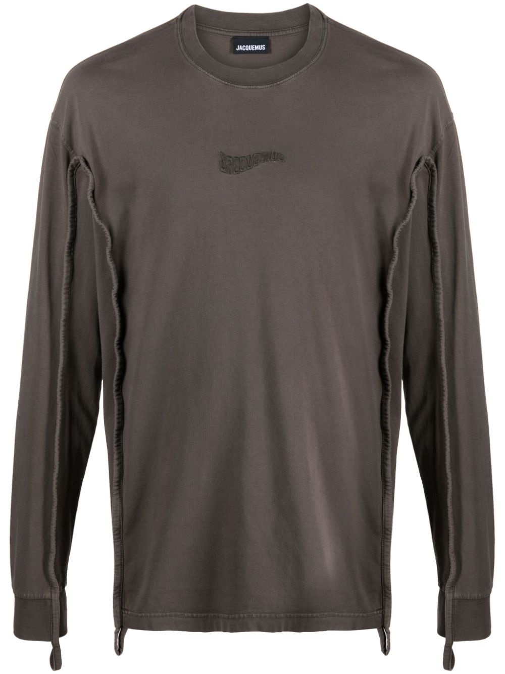 Le T-shirt Camargue organic-cotton top Jacquemus' Le T-shirt Camargue is detailed with looped piping through the bodice and sleeves and embroidered with a wavy moniker in tonal threads at the chest. It’s crafted to a drop-shoulder silhouette in organic cotton for a lower impact. Highlights - Taupe brown - Organic cotton - Embroidered logo to the front - Piped-trim detailing - Crew neck - Drop shoulder - Long sleeves - Ribbed cuffs - Straight hem Imported Composition Organic Cotton 100% SIZE & FIT Model measurements Height 6 ft 2 in(1.87 m) Bust/Chest 36.41 in(92.5 cm) Hips 35.43 in(90 cm) Waist 29.52 in(75 cm) FittingInformation Designed for a relaxed fit, this piece allows for comfort and movement when worn Made from a midweight non-stretch fabric, this piece offers minimal elasticity when worn This piece fits true to size – take your usual size Washing instructions Machine Wash