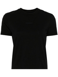 Le T-shirt Gros Grain top Jacquemus keeps design details minimal in this stretch-cotton T-shirt, save for the petite logo patch that adorns the chest. Highlights - Black - Stretch-cotton - Jersey texture - Grosgrain loop tab - Embroidered logo to the front - Crew neck - Short sleeves - Straight hem - Cropped Imported Composition Cotton 94%, Elastane 6%