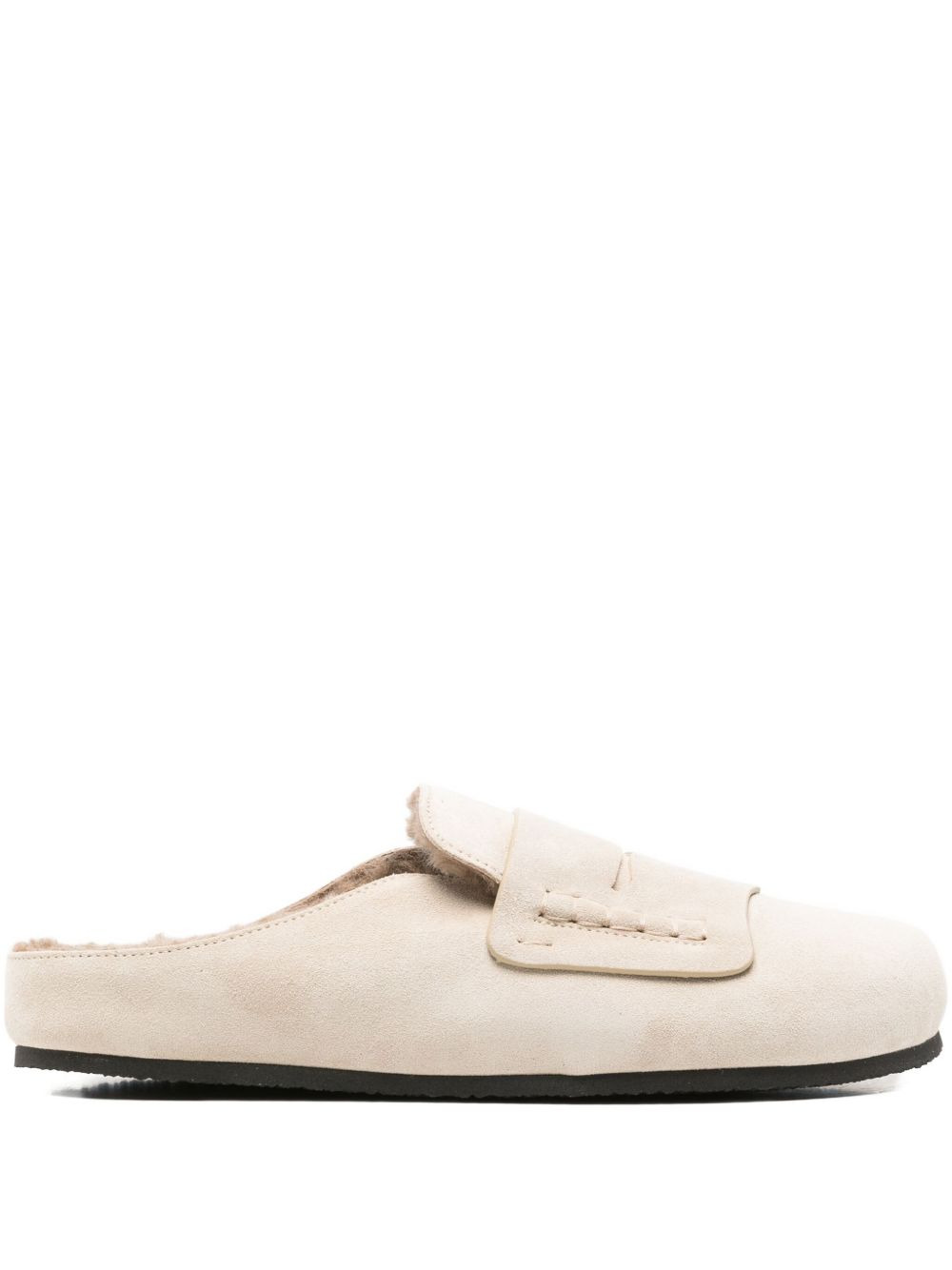 Les Mocassin mules Highlights - Beige - Slip-on style - Panelled design - Shearling trim - Flat sole Made in Italy Composition Sole: Rubber 100% Lining: Lamb Shearling 100% Outer: Calf Suede 100%