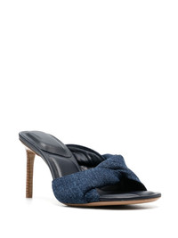 Les mules Bagnu 95mm sandals Jacquemus' Les mules Bagnu sandals boast an asymmetric front strap made from twisted mid-wash denim. They're fitted with a padded footbed and sit atop a wooden stiletto heel. Highlights - Blue - Calf leather - Denim - Cushioned insole - Open toe - Twist detailing - High stiletto heel - Slip-on style Made in Italy Composition Lining: Cotton 100% SIZE & FIT Measurement HEEL 3.7 in(9.4 cm) Sole height 0.43 in(1.1 cm)