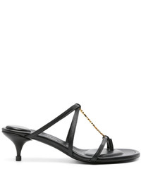 Les Sandales Pralu 40mm mules Highlights - Black - Calf leather - Smooth grain - Round open toe - Thong strap - Gold-tone logo plaque - Crossover strap at the toe - Slip-on style - 40mm low cone heel - Branded leather insole Made in Italy Composition Lining: Calf Leather 100%, Polyurethane 100% Sole: Calf Leather 100% Outer: Calf Leather 100%, Polyurethane 100% SIZE & FIT Measurement HEEL 2.36 in(6 cm)
