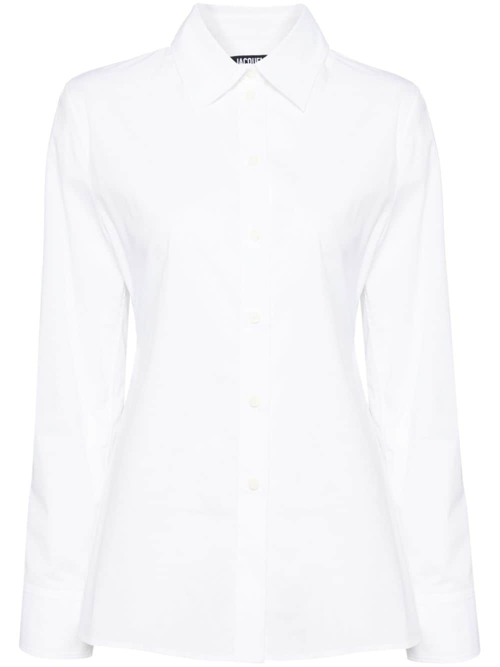 Les Sculptures blouse Highlights - White - Cotton blend - Logo patch to the rear - Front button fastening - Rear adjustable waist strap - Long sleeves - Buttoned cuffs - Classic collar - Rear cut-out detailing Imported Composition Cotton 96%, Elastane 4% SIZE & FIT Model measurements Height 5 ft 9 in(1.76 m) Bust/Chest 31.1 in(79 cm) Hips 35.03 in(89 cm) Waist 24.4 in(62 cm) FittingInformation Designed for a slim fit that sits just away from the body offering a close yet comfortable fit The belt offers adjustability for fitted preferences Made from a midweight stretch fabric, this piece offers elasticity and flexibility when worn This piece fits true to size – take your usual size