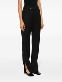 Les Sculptures tailored trousers Cut from a virgin wool to a straight-leg silhouette, Jacquemus' Les Sculptures trousers are characterised by their split cuffs and tailored silhouette. Highlights - Black - Virgin wool - High waist - D-ring findings - Two diagonal pockets to the sides - Pressed crease - Side slits - Two rear welt pockets - Partial lining - Concealed front button, hook and zip fastening Imported Composition Lining: Cotton 97%, Elastane 3% Virgin Wool 100% SIZE & FIT Model measurements Height 5 ft 10 in(1.77 m) Bust/Chest 33.07 in(84 cm) Hips 37 in(94 cm) Waist 24.8 in(63 cm) FittingInformation Designed with a cigarette cut, these trousers allow for a close fit at the waist and offer an unrestricted fit through to the ankle Made from a midweight non-stretch fabric This piece fits true to size – take your usual size Washing instructions Dry Clean Only
