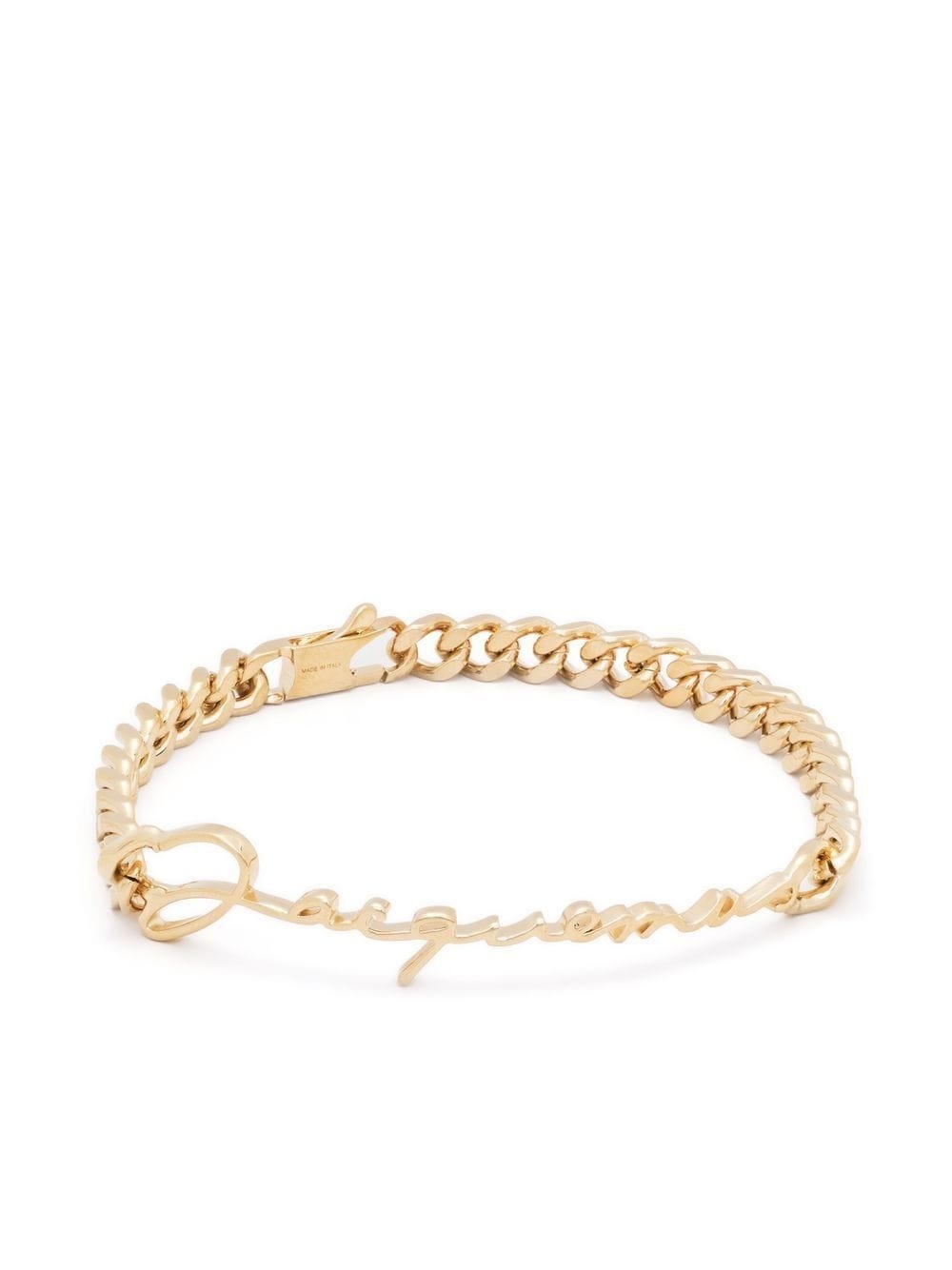 La Gourmette Jacquemus bracelet Highlights - Gold-tone - Gold-tone hardware - Chain-link detailing - Clasp fastening Made in Italy SIZE & FIT Model measurements Height 5 ft 11 in(1.8 m) Bust/Chest 33.07 in(84 cm) Hips 37.4 in(95 cm) Waist 25.19 in(64 cm) Measurement PENDANT LENGTH 0.43 in(1.1 cm) PENDANT WIDTH 2.36 in(6 cm) TOTAL LENGTH 7.87 in(20 cm) WIDTH 0.19 in(0.5 cm)