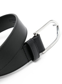 logo-engraved leather belt Highlights - Black - Calf leather - Logo-engraved buckle - Silver-tone hardware - Buckle fastening - Punched holes Made in Italy Composition Calf Leather 100%