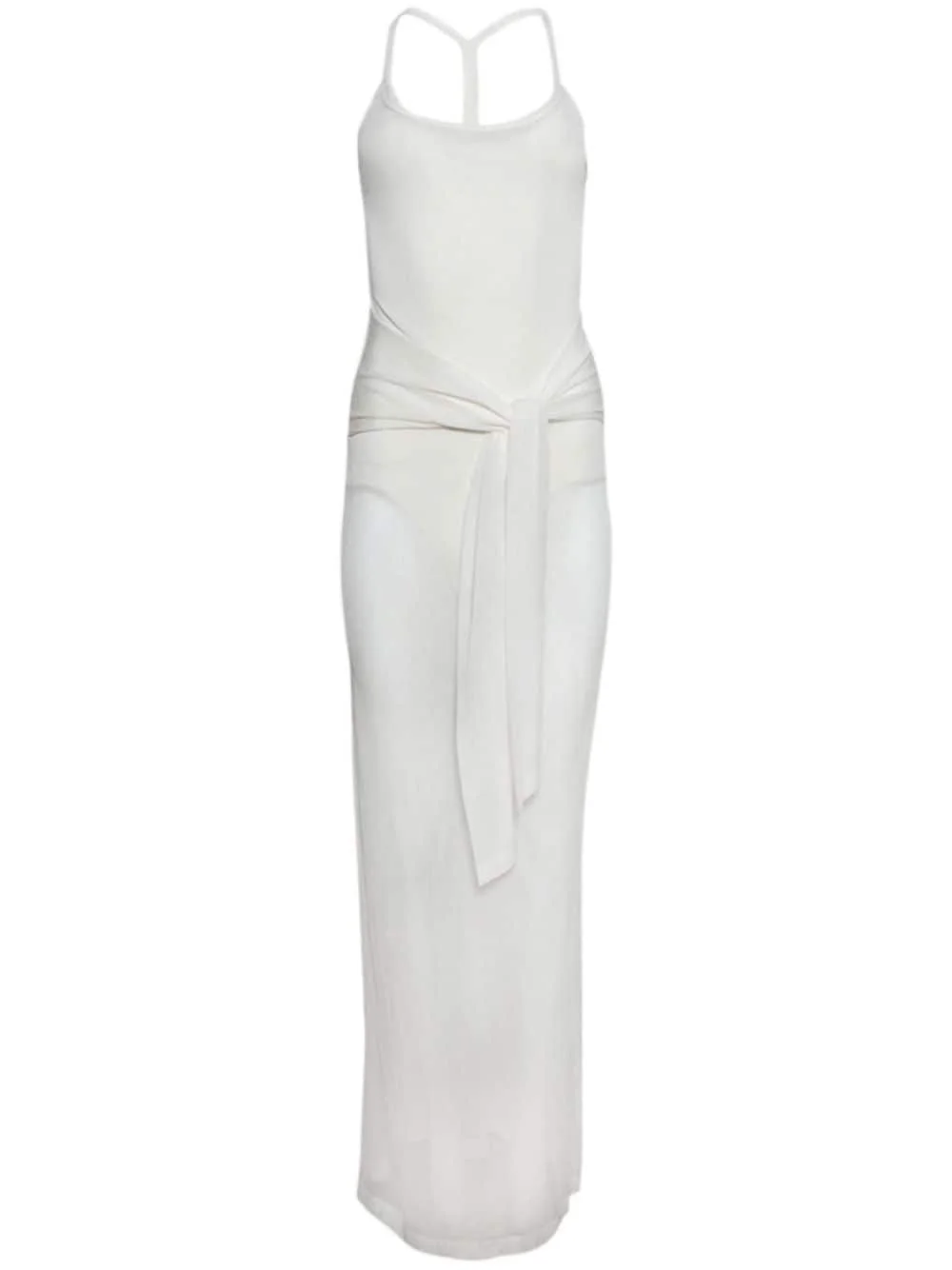 Nodo dress Highlights - Off-white - Stretch-design - Semi-sheer construction - Slip-on style - Halterneck - Thin straps - Draped detailing - Belted waist - Racerback - Logo patch to the rear - Partial lining Imported Composition Viscose 79%, Polyamide 19%, Spandex/Elastane 2% Washing instructions Read Manufacturer Guidelines