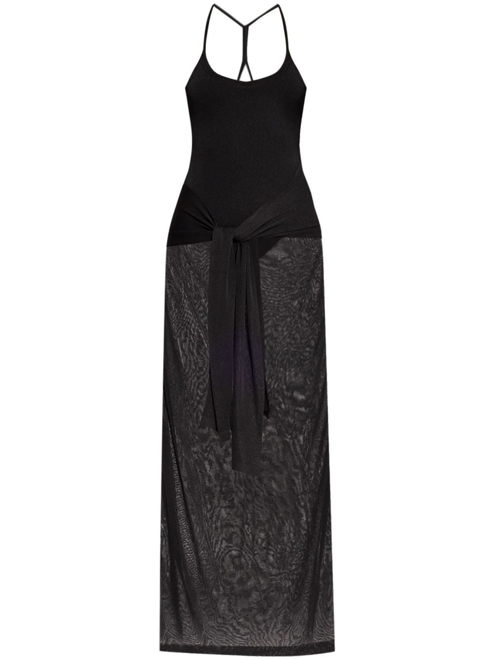 La robe Nodo maxi dress Highlights - Black - Semi-sheer construction - Applique logo - Scoop neck - Spaghetti straps - Rear criss-cross straps - Draped detailing - Long length Imported Composition Viscose 79%, Polyamide 19%, Elastane 2% SIZE & FIT Measurement HIPS 32.67 in(83 cm) LENGTH 58.66 in(149 cm) WAIST 27.16 in(69 cm)