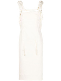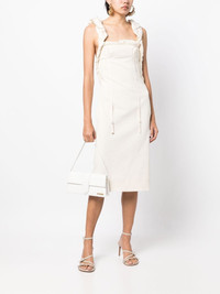 open-back ruffle-shoulder dress Crafted in a blend of stretch cotton, this Jacquemus dress is defined by ruffled shoulder straps and a large cut-out back, contributing to the label's playful and cutting-edge aesthetic. Imported Composition Body: Cotton 67%, Viscose 32%, Elastane 1% Outer: Cotton 100% Washing instructions Dry Clean Only