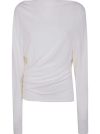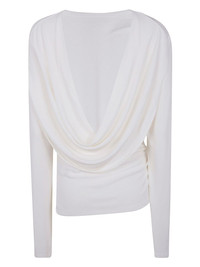 open-back top Highlights - White - Ruched detailing - Round neck - Long sleeves - Straight hem Imported Composition Viscose 82%, Polyamide 18%