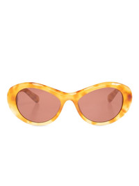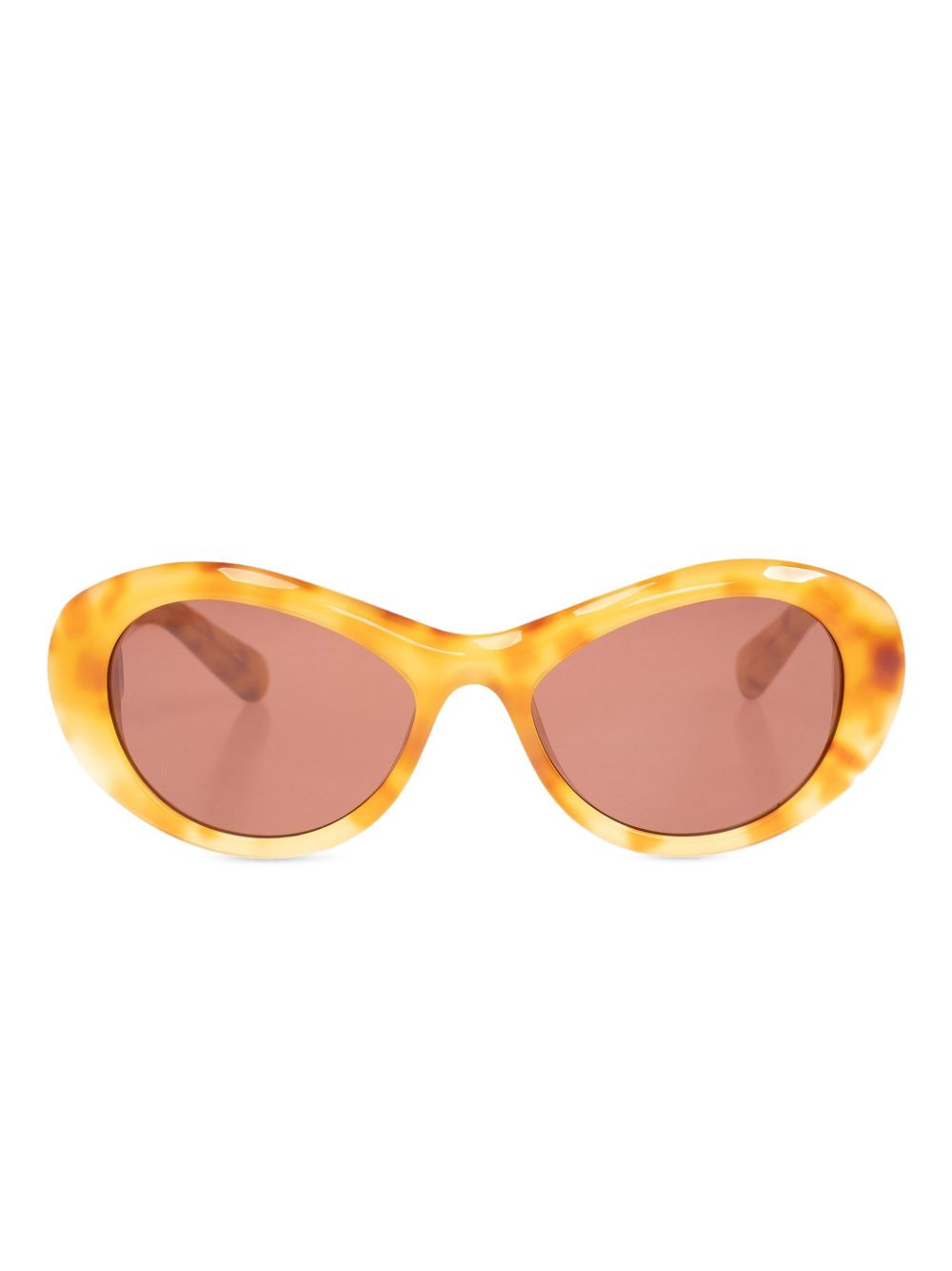 oval-frame sunglasses Highlights - Yellow - Pink tinted lenses - Nose pads - Curved tips - These glasses come with a protective case. Imported Composition Acetate 100% SIZE & FIT Measurement Arm Length 5.51 in(14 cm) Bridge Width 0.74 in(1.9 cm) Lens Diameter 2.16 in(5.5 cm)