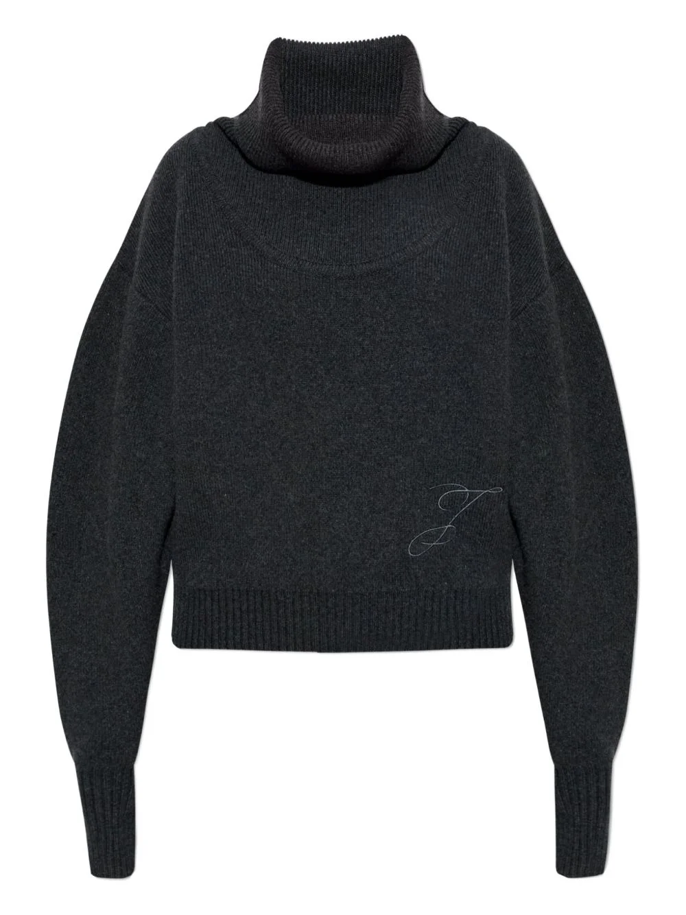 Pallone turtleneck embroidered sweater Highlights - Dark grey - Embroidered detail - Roll neck - Long sleeves - Ribbed hem and cuffs Made in Italy Composition Virgin Wool 90%, Cashmere 10% Washing instructions Read Manufacturer Guidelines