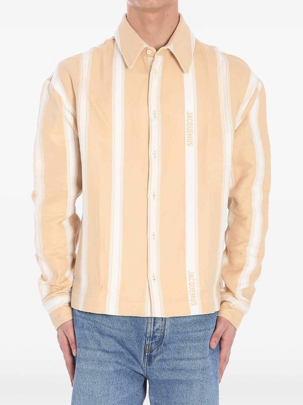 Papier shirt Highlights - Light beige - Front button fastening - Buttoned cuffs - Vertical stripe pattern - Logo print to the front Imported Composition Cotton 99%, Silk 1%