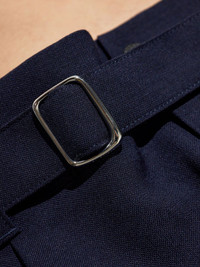 pleated belted shorts Highlights - Navy blue - High-waisted - Front pleats - Detachable belt - Side pockets - Tailored cut Imported Composition Wool 100%