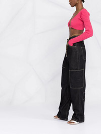 La Maille Pralu cropped cardigan Known for pushing the boundaries with knitwear, Jacquemus presets a signature silhouette in a ribbed knit. Presented in a deep pink shade, the cardigan is accented with a gold-tone logo lettering plaque. Highlights - Pink - Stretch-design - Ribbed knit - Gold-tone logo plaque - Long sleeves - Scoop neck - Open front - Long sleeves - Cropped Made in Italy Composition Viscose 81%, Polyamide 12%, Spandex/Elastane 4%, Polyester 3% SIZE & FIT Model measurements Height 6 ft 0 in(1.84 m) Bust/Chest 36.61 in(93 cm) Hips 36.22 in(92 cm) Waist 29.52 in(75 cm) Measurement LENGTH 12.99 in(33 cm) SLEEVE LENGTH 25.59 in(65 cm)