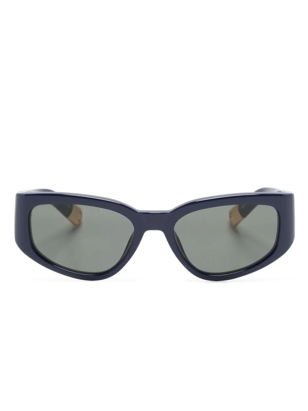 rectangle-frame sunglasses Highlights - Navy blue - Acetate - Rectangle frame - Grey tinted lenses - Gold-tone logo at the arm - Contrasting tips - Straight arms with curved tips - These glasses come with a protective case. Imported Composition Acetate 100% SIZE & FIT Measurement Arm Length 5.31 in(13.5 cm) Bridge Width 0.74 in(1.9 cm) Lens Diameter 2.16 in(5.5 cm) Total Width 5.7 in(14.5 cm)