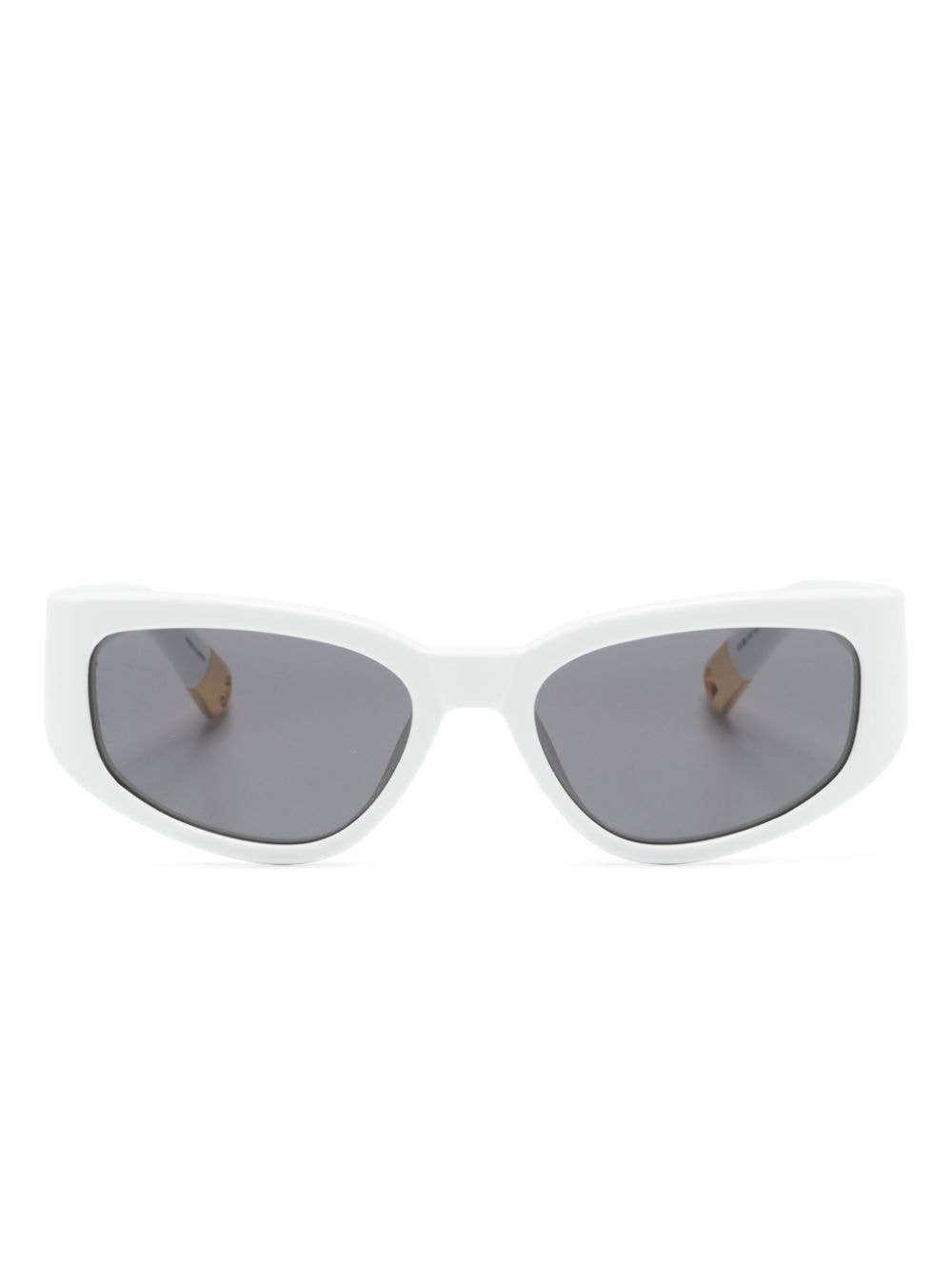 rectangle-frame sunglasses Highlights - White - Acetate - Rectangle frame - Grey tinted lenses - Gold-tone logo at the arm - Contrasting tips - Straight arms with curved tips - These glasses come with a protective case. Imported Composition Acetate 100% SIZE & FIT Measurement Arm Length 5.31 in(13.5 cm) Bridge Width 0.74 in(1.9 cm) Lens Diameter 2.16 in(5.5 cm) Total Width 5.7 in(14.5 cm)