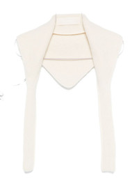 ribbed-knit collar scarf Highlights - White - Ribbed knit - Collar design - Long ends - Open front - Alpaca-wool blend Made in Italy Composition Alpaca 47%, Polyamide 33%, Wool 20% SIZE & FIT Measurement LENGTH 59.05 in(150 cm) WIDTH 16.92 in(43 cm) Washing instructions Read Manufacturer Guidelines