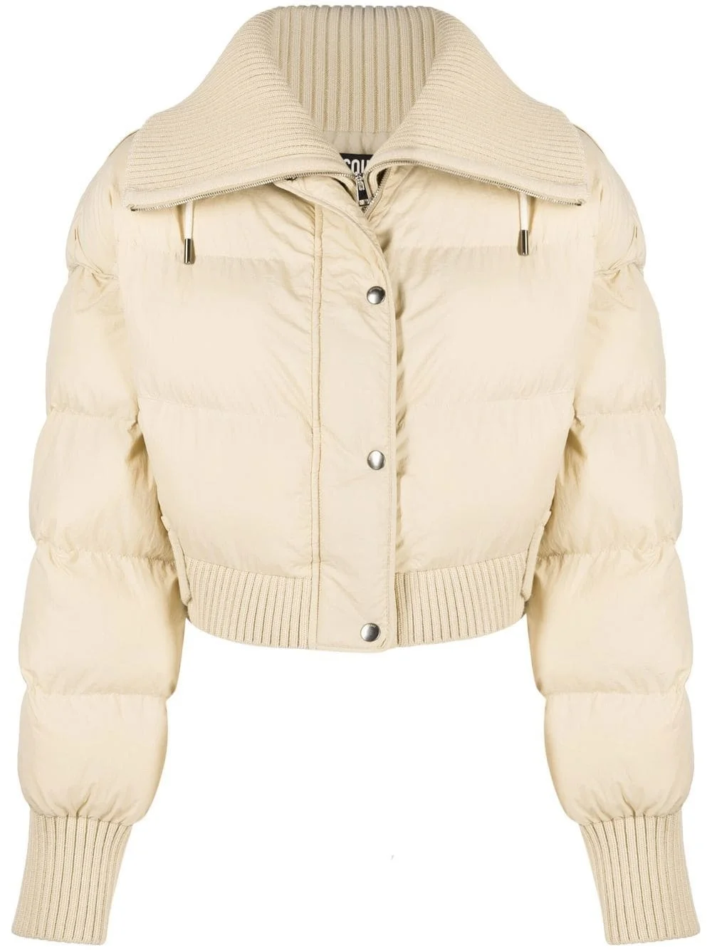 ribbed-knit puffer jacket light beige chunky ribbed knit quilted finish padded design front press-stud and zip fastening drawstring hood long sleeves ribbed cuffs ribbed hem Made in Italy Composition Outer: Polyamide 100% Lining: Polyester 100%, Polyethylene 100% Washing instructions Dry Clean Only