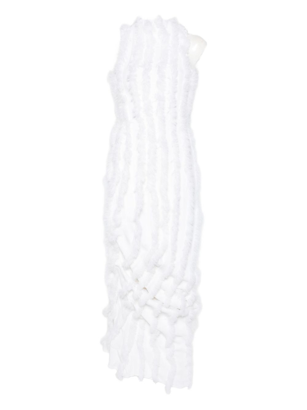 ruffled draped maxi dress Highlights - White - Sleeveless - Concealed zip fastening - Ruffled design - Gathered detail Imported Composition Viscose 65%, Acetate 32%, Elastane 3% SIZE & FIT Model measurements Height 5 ft 9 in(1.76 m) Bust/Chest 31.49 in(80 cm) Hips 35.43 in(90 cm) Waist 23.62 in(60 cm) Washing instructions Read Manufacturer Guidelines
