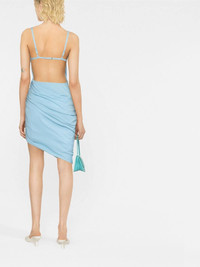 La Robe Saudade draped minidress Highlights - Baby blue - Cotton - Voile - Adjustable spaghetti straps - Draped detailing - Gathered detailing - Open back - Asymmetric hem Imported Composition Outer: Cotton 100% Lining: Cotton 97%, Spandex/Elastane 3% SIZE & FIT Model measurements Height 5 ft 10 in(1.79 m) Bust/Chest 31.49 in(80 cm) Hips 35.03 in(89 cm) Waist 23.62 in(60 cm) FittingInformation This piece fits true to size. We recommend you get your regular size Designed for a close fit at the bust, waist and hips Made with a mid-weight non-stretch fabric Washing instructions Dry Clean Only