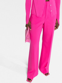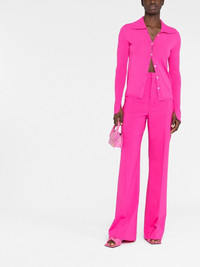 Sauge high-waisted flared trousers Breaking away from the label's signature earthy colour palette, Jacquemus updates the Sauge trousers in a vibrant fuchsia pink hue. This pair boasts a gently-flared wide fit and flattering high waist. Imported Composition Outer: Virgin Wool 98%, Spandex/Elastane 2% Lining: Cotton 97%, Spandex/Elastane 3% SIZE & FIT Model measurements Height 5 ft 10 in(1.77 m) Bust/Chest 32.28 in(82 cm) Hips 35.03 in(89 cm) Waist 25.19 in(64 cm) Washing instructions Dry Clean Only