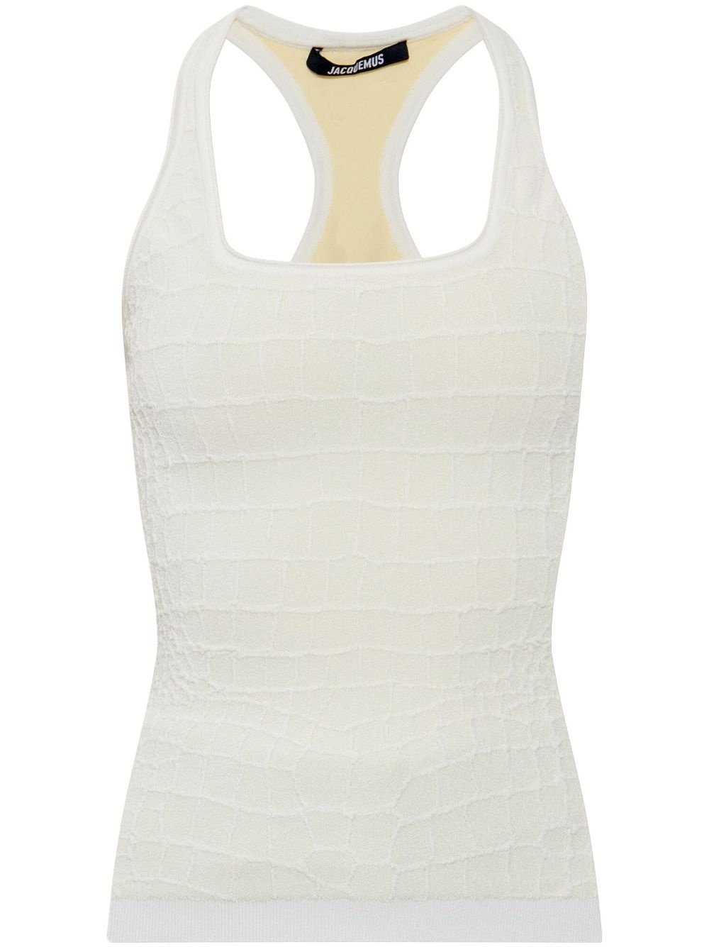 Scala tank top Highlights - White - Geometric embroidery - Square neck - Racerback - Straight hem Imported Composition Viscose 100% SIZE & FIT FittingInformation Designed for a slim fit that sits just away from the body offering a close yet comfortable fit Made from a midweight stretch fabric, this piece offers elasticity and flexibility when worn