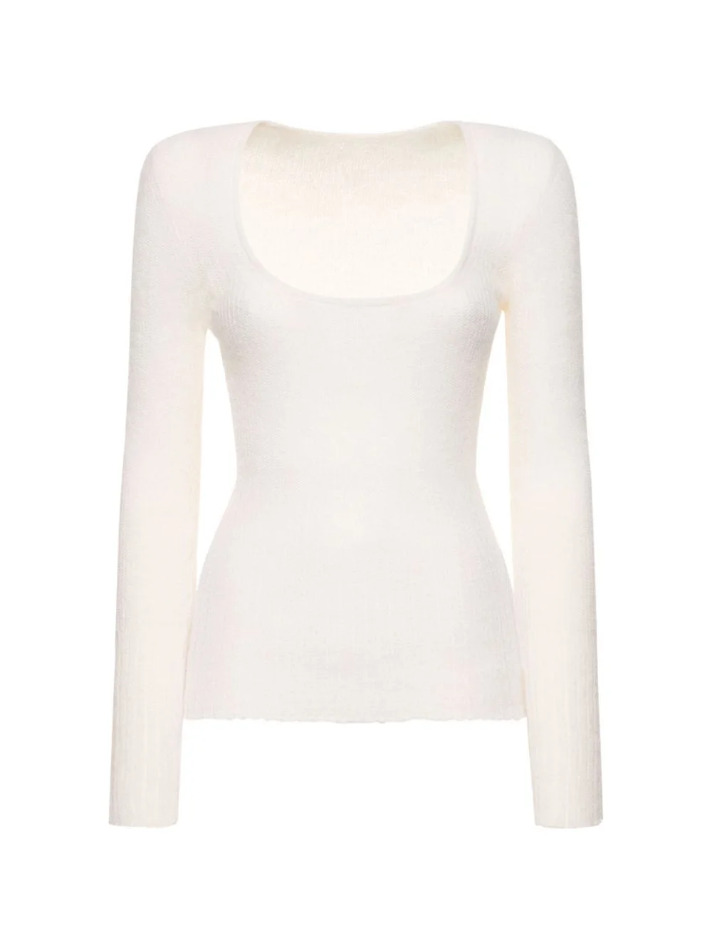 scoop-neck long-sleeve sweater Highlights - Off-white - Fine knit - Long sleeves - Scoop neckline Imported Composition Mohair 34%, Alpaca Wool 34%, Polyamide 32% Washing instructions Read Manufacturer Guidelines