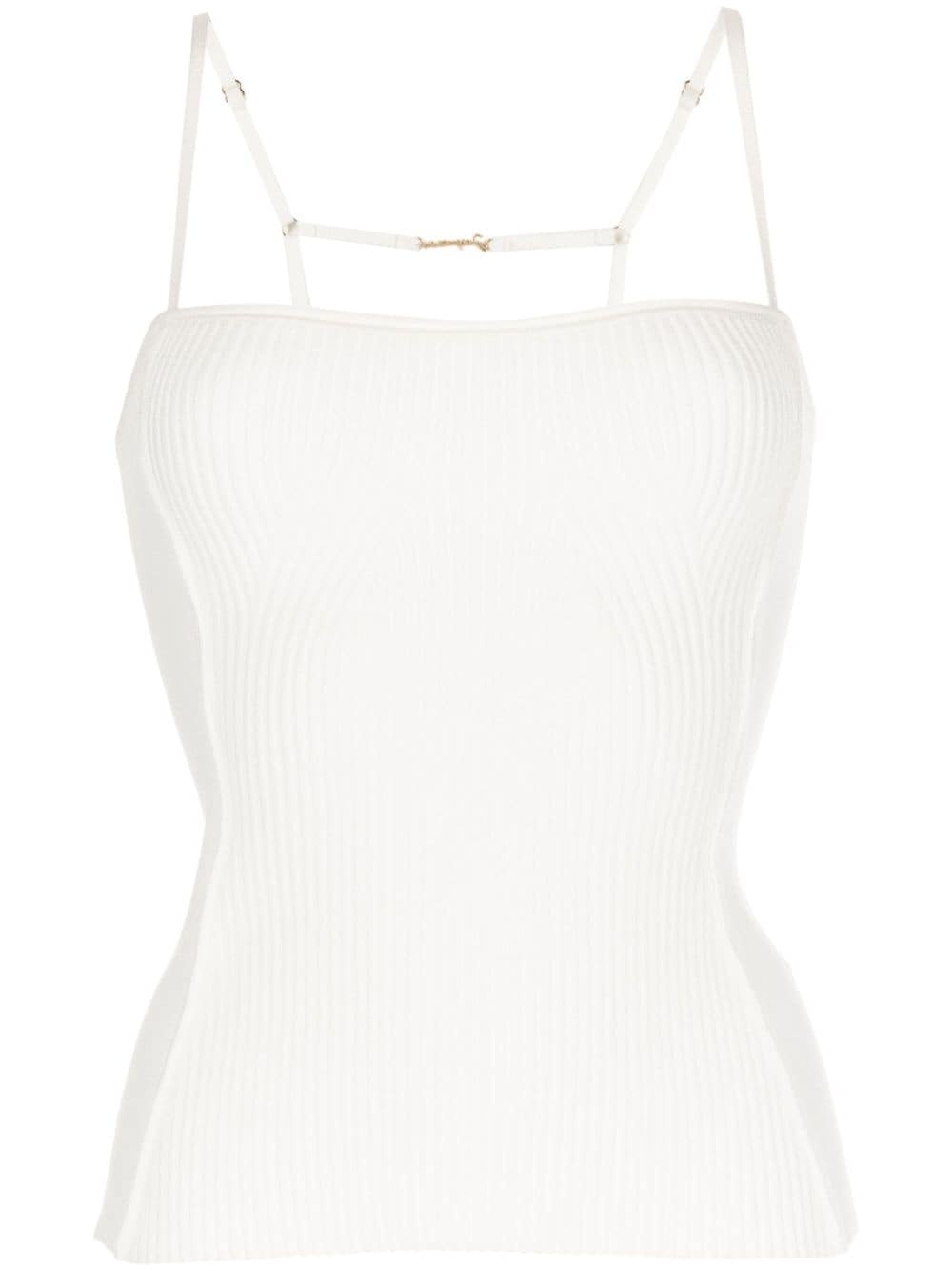 Sierra ribbed-knit top Highlights - Ivory white - Ribbed knit - Square neck - Adjustable spaghetti straps - Gold-tone logo plaque - Straight hem Imported Composition Viscose 80%, Polyester 12%, Elastane 8% SIZE & FIT Model measurements Height 5 ft 9 in(1.75 m) Bust/Chest 31.88 in(81 cm) Hips 35.03 in(89 cm) Waist 23.22 in(59 cm) FittingInformation Designed for a close fit throughout The adjustable shoulder straps allow for a preferred fit when worn Made with a midweight knit, this piece offers some stretch This piece fits close in all sizes – take your usual size Washing instructions Hand Wash