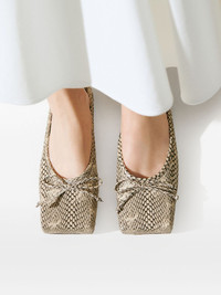 snakeskin-effect mules Highlights - Sesame beige - Slip-on style - Bow detailing - Branded insole - Square toe Made in Italy Composition Lining: Lamb Skin 100% Sole: Calf Leather 100% Outer: Lamb Skin 100%